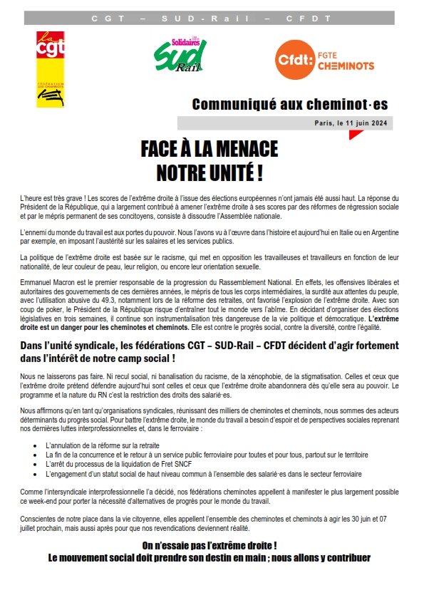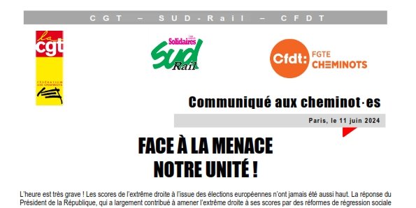 Communiqué des fédérations cheminotes CGT - SUD-Rail - CFDT