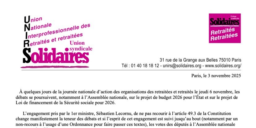 À quelques jours de la journée nationale d’action des organisations des retraitées et retraités le jeudi 6 novembre, les débats se poursuivent, notamment à l’Assemblée nationale, sur le projet de budget 2026 pour l’État et sur le projet de Loi de financement de la Sécurité sociale pour 2026.