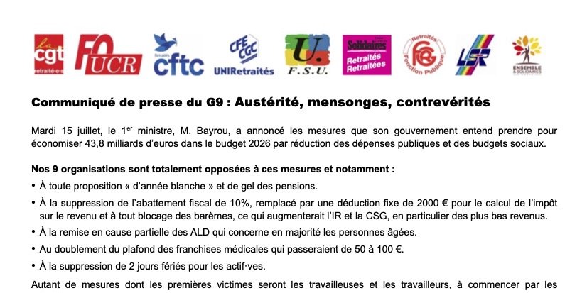 Autant de mesures dont les premières victimes seront les travailleuses et les travailleurs, à commencer par les retraité·es.