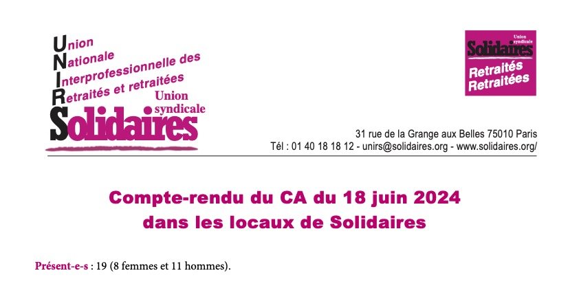 Compte-rendu du CA de l'UNIRS du 18 juin 2024