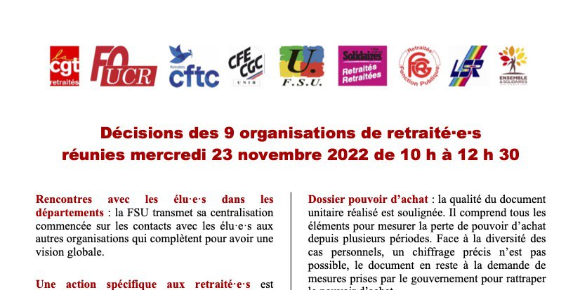 Prochaine réunion : lundi 12 décembre à 9 h 30 dans les locaux de la FSU.