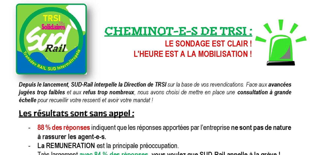 SUD-Rail appelle l'ensemble des agent-e-s de Transdev Raill Sud Intermétropole à se mettre très largement en grève à partir du 6 NOVEMBRE et à décider collectivement de la suite à donner à ce mouvement !