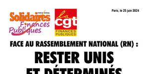 Nos organisations syndicales Solidaires Finances Publiques et CGT Finances Publiques appellent à faire barrage au Rassemblement National, parti aux antipodes de nos valeurs et de nos revendications sociales : le partage des richesses, une protection sociale financée par les solidarités et un service public renforcé et re-humanisé.