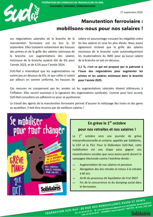 Ces mesures ne compensent pas les années où les augmentations salariales étaient inférieures à l’inflation. Elles seront soumises à la signature des organisations syndicales. Comme pour tout accord, SUD-Rail consultera ses adhérent-es pour se positionner.