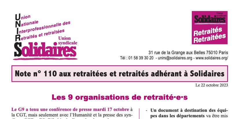 - Un communiqué de presse du G9 va être rédigé pour mettre en avant nos analyses et nos critiques sur le PLFSS 2024. C’est la FSU qui rédige le projet (Marylène Cahouet).
