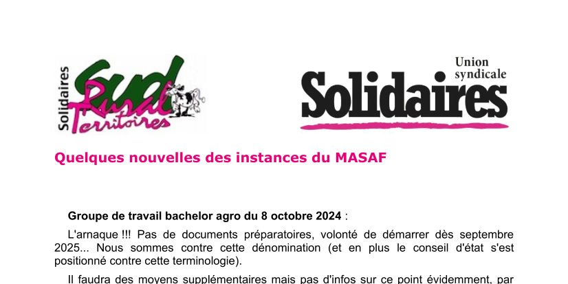 Groupe de travail bachelor agro du 8 octobre 2024 :