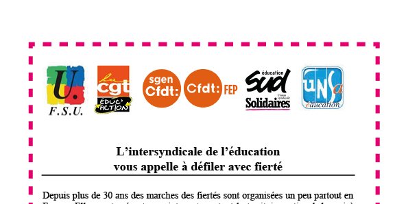 L'intersyndicale de l'éducation vous appelle à défiler avec fierté !