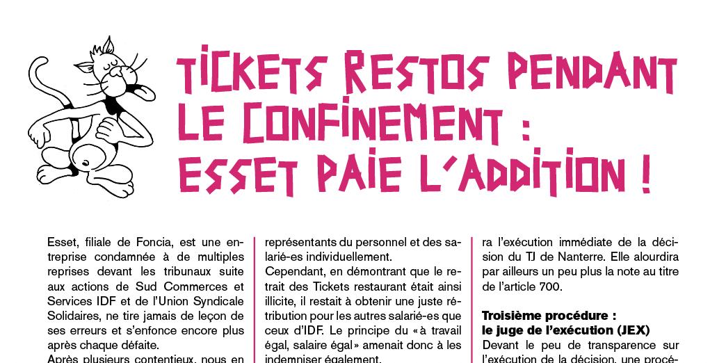 Esset, filiale de Foncia, est une entreprise condamnée à de multiples reprises devant les tribunaux suite aux actions de Sud Commerces et Services IDF et de l’Union Syndicale Solidaires, ne tire jamais de leçon de ses erreurs et s’enfonce encore plus après chaque défaite.