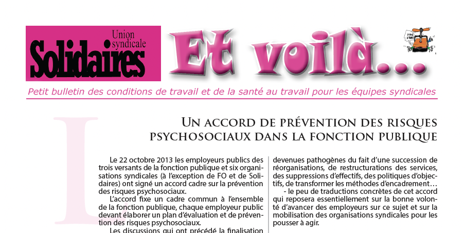 * page 1 : Un accord de prévention des risques psychosociaux dans la