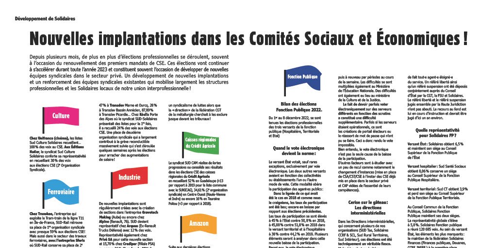 Suite aux dernières élections, les syndicats Sud sont désormais représentés, et souvent majoritaires, dans trois des cinq périmètres CSE d'Amazon France Transport ce qui nous place en deuxième syndicat de l’entreprise avec 29% suite à notre implantation dans l'entreprise en 2020.