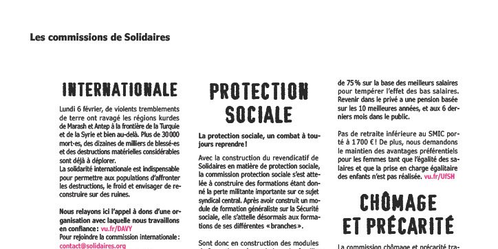 Pour rejoindre la commission envoyez un mail à contact@solidaires.org à l’attention de Elie et Ophélie.