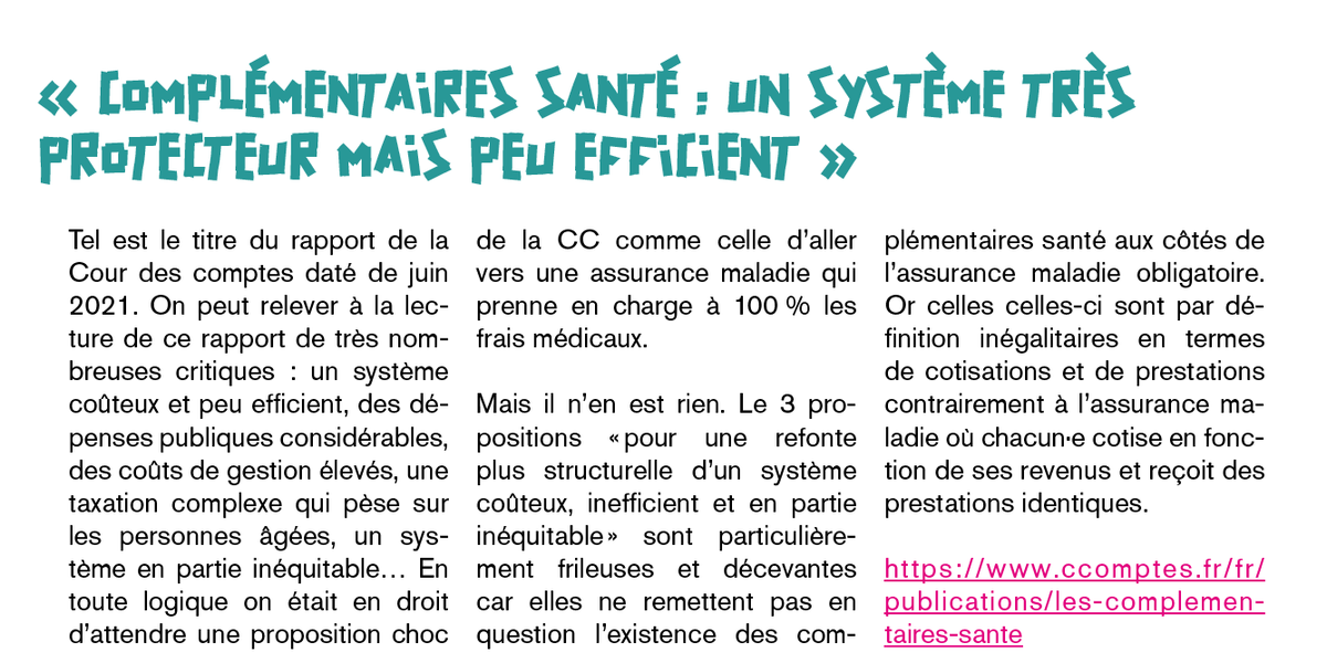 Mais il n’en est rien. Le 3 propositions « pour une refonte plus structurelle d’un système coûteux, inefficient et en partie inéquitable » sont particulièrement frileuses et décevantes car elles ne remettent pas en question l’existence des complémentaires santé aux côtés de l’assurance maladie obligatoire. Or celles celles-ci sont par définition inégalitaires en termes de cotisations et de prestations contrairement à l’assurance maladie où chacun·e cotise en fonction de ses revenus et reçoit des prestations identiques.