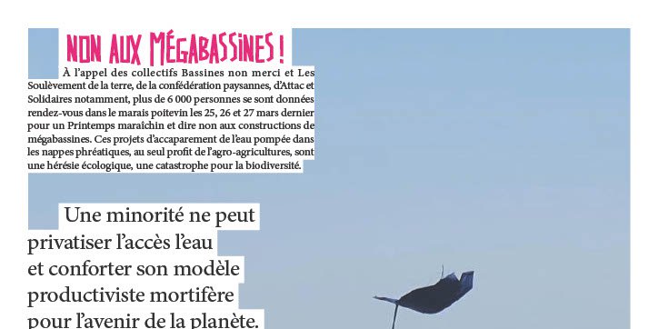 À l’appel des collectifs Bassines non merci et Les Soulèvement de la terre, de la confédération paysannes, d’Attac et Solidaires notamment, plus de 6 000 personnes se sont données rendez-vous dans le marais poitevin les 25, 26 et 27 mars dernier pour un Printemps maraîchin et dire non aux constructions de mégabassines.