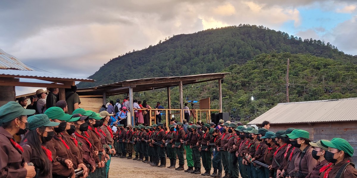 L’Armée zapatiste de libération nationale (EZLN : Ejército Zapatista de Liberación Nacional) a été fondée le 17 novembre 1983 dans les montagnes du sud-est mexicain (il y a 40 ans). Ce groupe de guérilleros se revendiquant du Che Guevara s’installe dans un territoire habité par des Mayas et leur projet révolutionnaire s’imprègne de leur culture et de leur langue. Leurs façons de penser se transforment profondément avec l’intégration de femmes et d’hommes principalement Tzeltales et Tzotziles (cultures mayas) : le projet de soulèvement armé se consolide, la place de la vie communautaire maya devient centrale, avec une importante participation des femmes qui imposent la loi révolutionnaire des femmes pour l’égalité en 1993. Ce sont les peuples zapatistes qui votent le soulèvement en 1993.