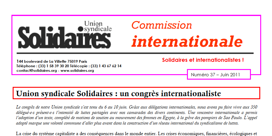 - Union syndicale Solidaires : un congrès internationaliste