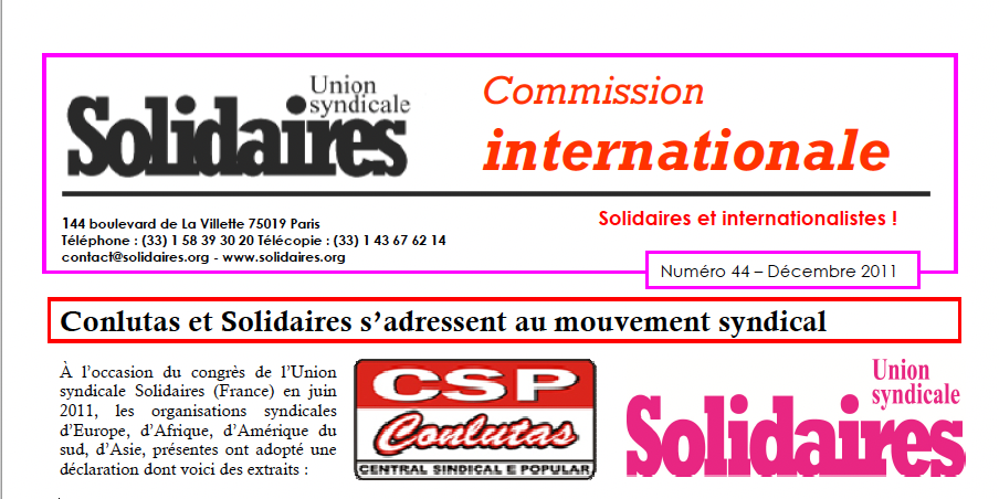 - Conlutas et Solidaires s’adressent au mouvement syndical