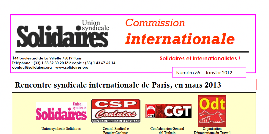 - Rencontre syndicale internationale de Paris, en mars 2013