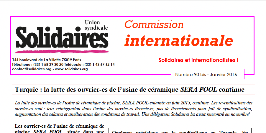 La lutte des ouvrier-es de l’usine de céramique SERA POOL en Turquie.