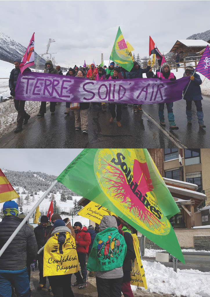 Syndicale Solidaires, soutenues par le syndicat paysan italien ARI et la Via Campesina, ont invité la population à se retrouver au col de Montgenèvre pour l’action Terres Solid’Air.